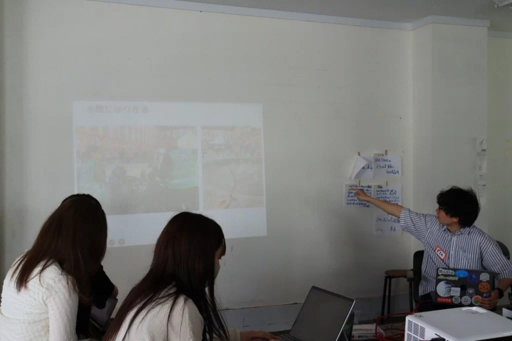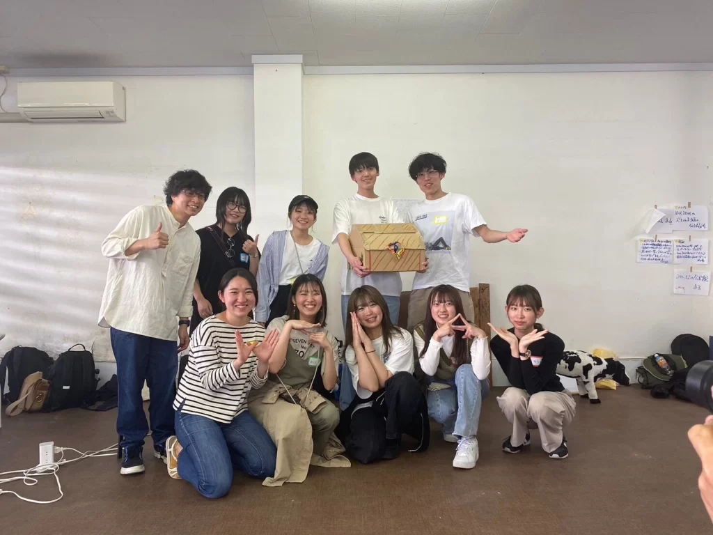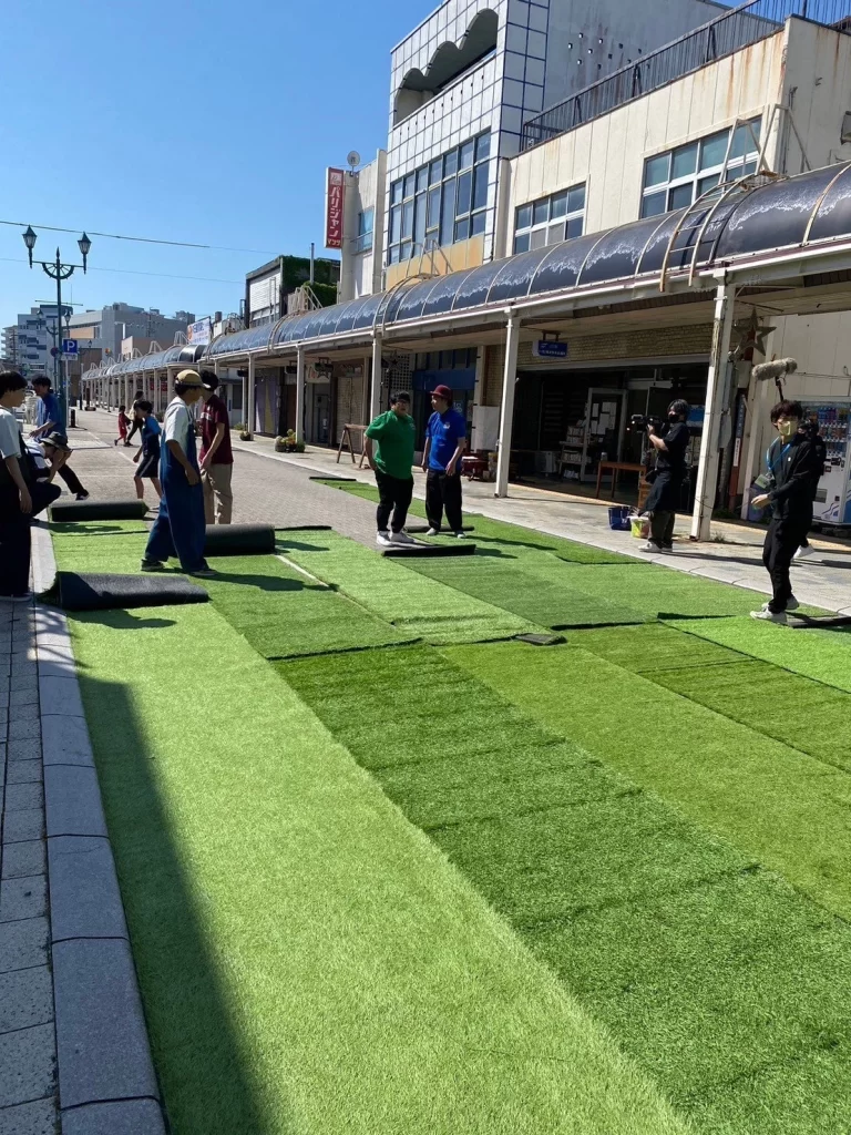 舞台は、焼津市の駅前通り商街!そこで2024年5月5日に行われる、「みんなのアソビバ」(商店街一面に芝生が敷かれ、おもちゃがたくさん置かれて子どもたちが自由に遊べるようになるんです!!)というイベントに、全国から集まった大学生や専門学生が1人1企画提案して、実行し「街の温度を1℃上げよう!」という企画です!