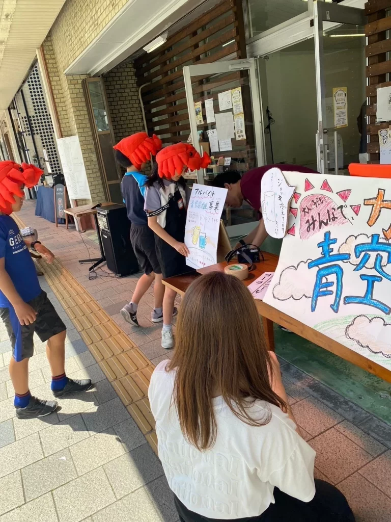 最初はなかなか、お客様さんが来ず1人でポツンとしていましたが、ここぞとばかりに小学生たちがやってきてお手伝いをしてくれるのです!!なんとなんと、商店街を駆け回って、宣伝までしてくれました笑